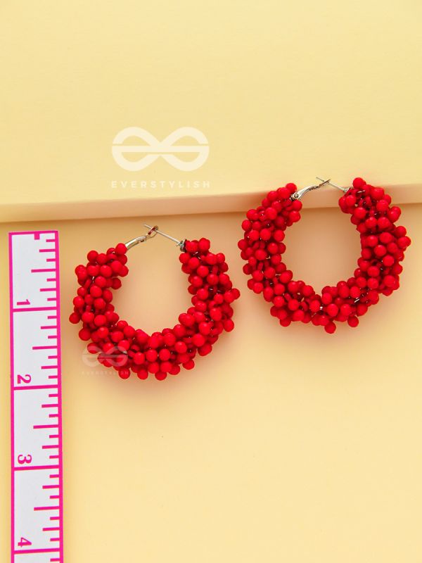 A Glimmer of Shimmer - Playful Embellished Hoops (Scarlet Red)