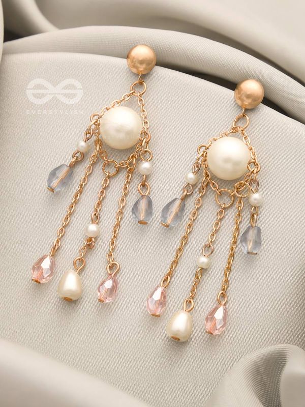 The Sparkling Showers- Golden Pearl and Beads Earrings