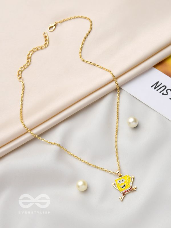 The Sprinting Spongebob- Golden Embellished Necklace With Anti-Tarnish Coating