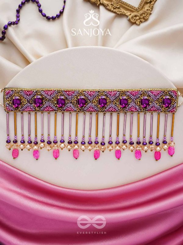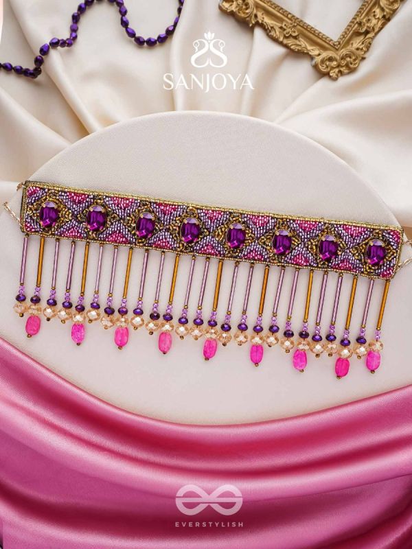 Aavsati- The Night Sky- Stones and Glass Beads Embroidered Choker Necklace