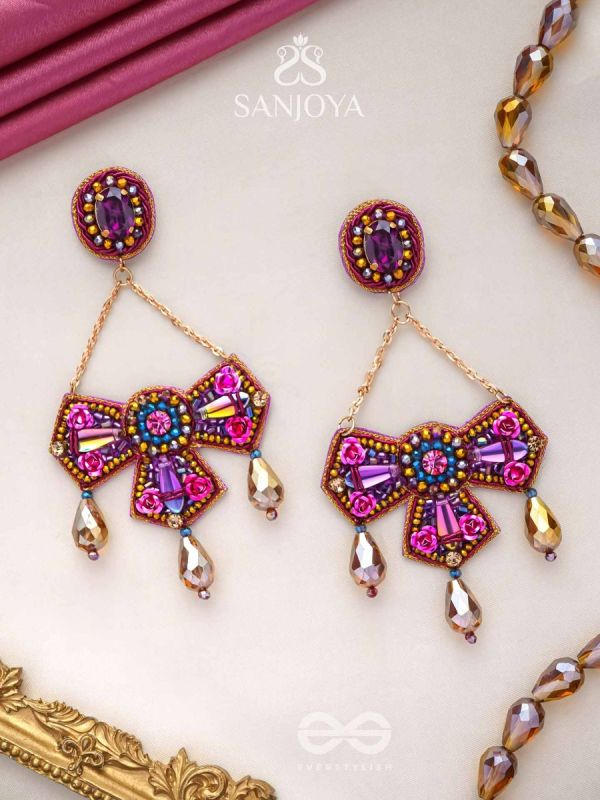 Shailaja - The Daughter Of The Mountain - Stone, Beads And Glass Drops Hand Embroidered Earrings