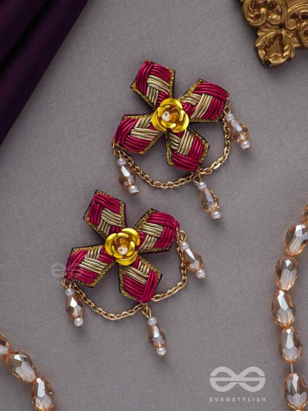 Chaarvi - The Beautiful And Elegant - Dabka And Glass Drops Hand Embroidered Earrings