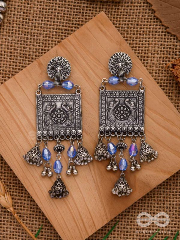CRYSTALLIZED IN INDIGO - EMBELLISHED OXIDISED EARRINGS