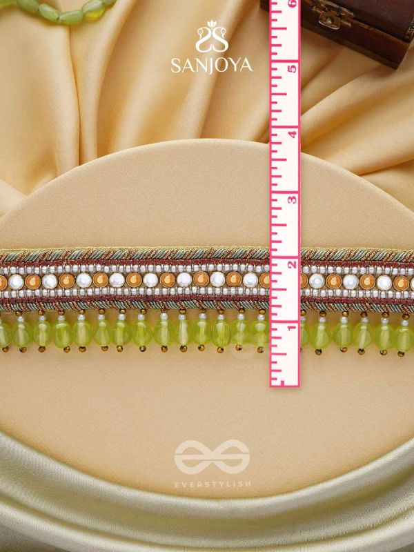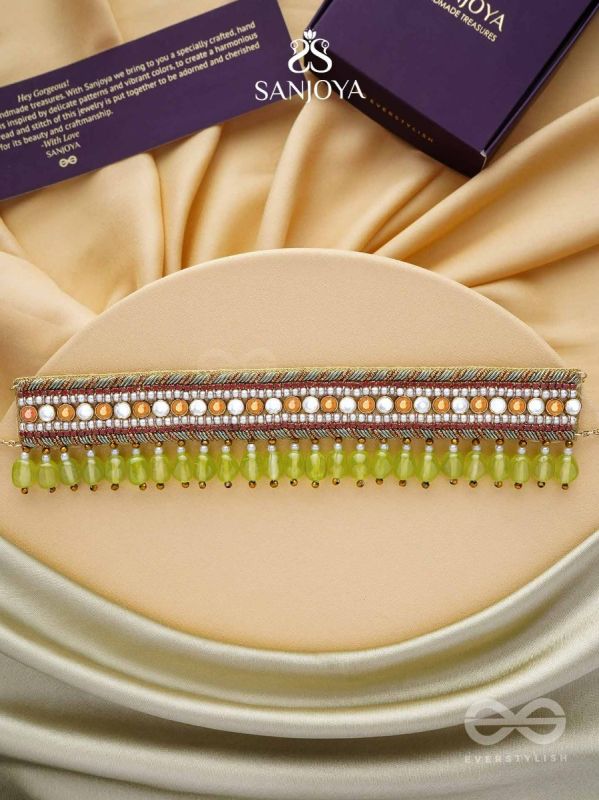 Hemaprabha- The Lively Love- Beads And Glass Drops Lace Hand Embroidered Choker Neckpiece