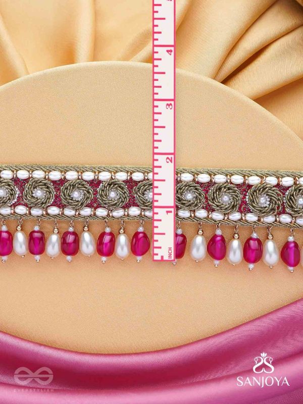 Paurandhra- The Divine Feminism- Beads, Pearl And Glass Drops Hand Embroidered Choker Neckpiece