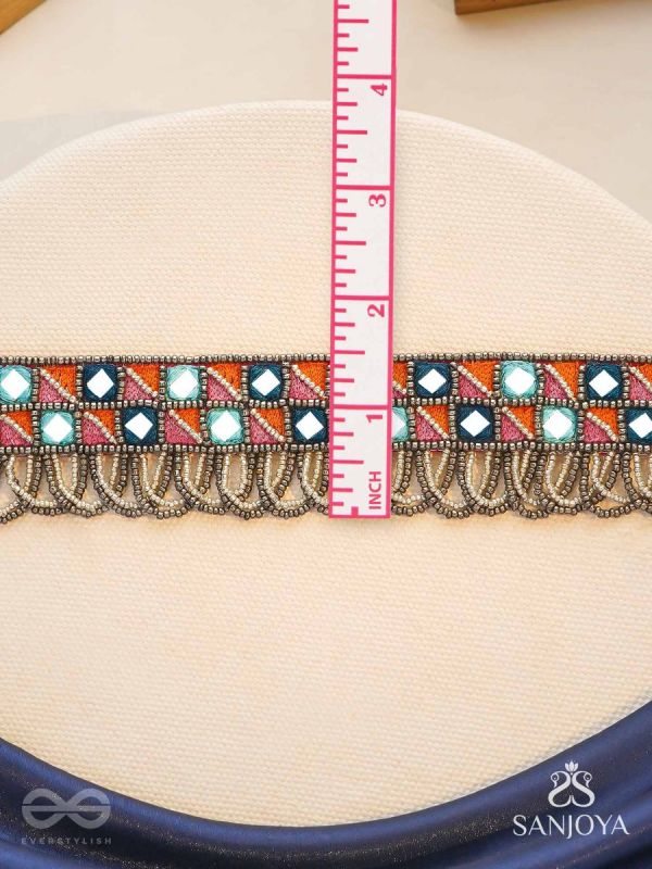 Dyupatha - The Sky Horizon - Mirror And Beads Hand Embroidered Oxidised Neckpiece