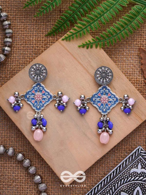 The Sky Blooms - Enamelled Oxidised Earrings