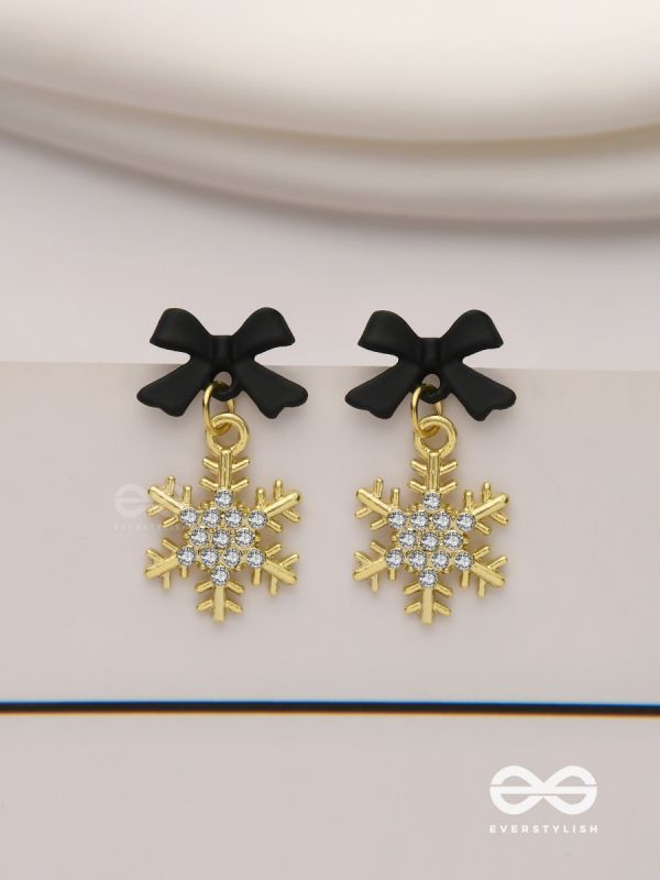 Nocturnal snowcharms- Dangling earrings with black velvety bows and golden stars
